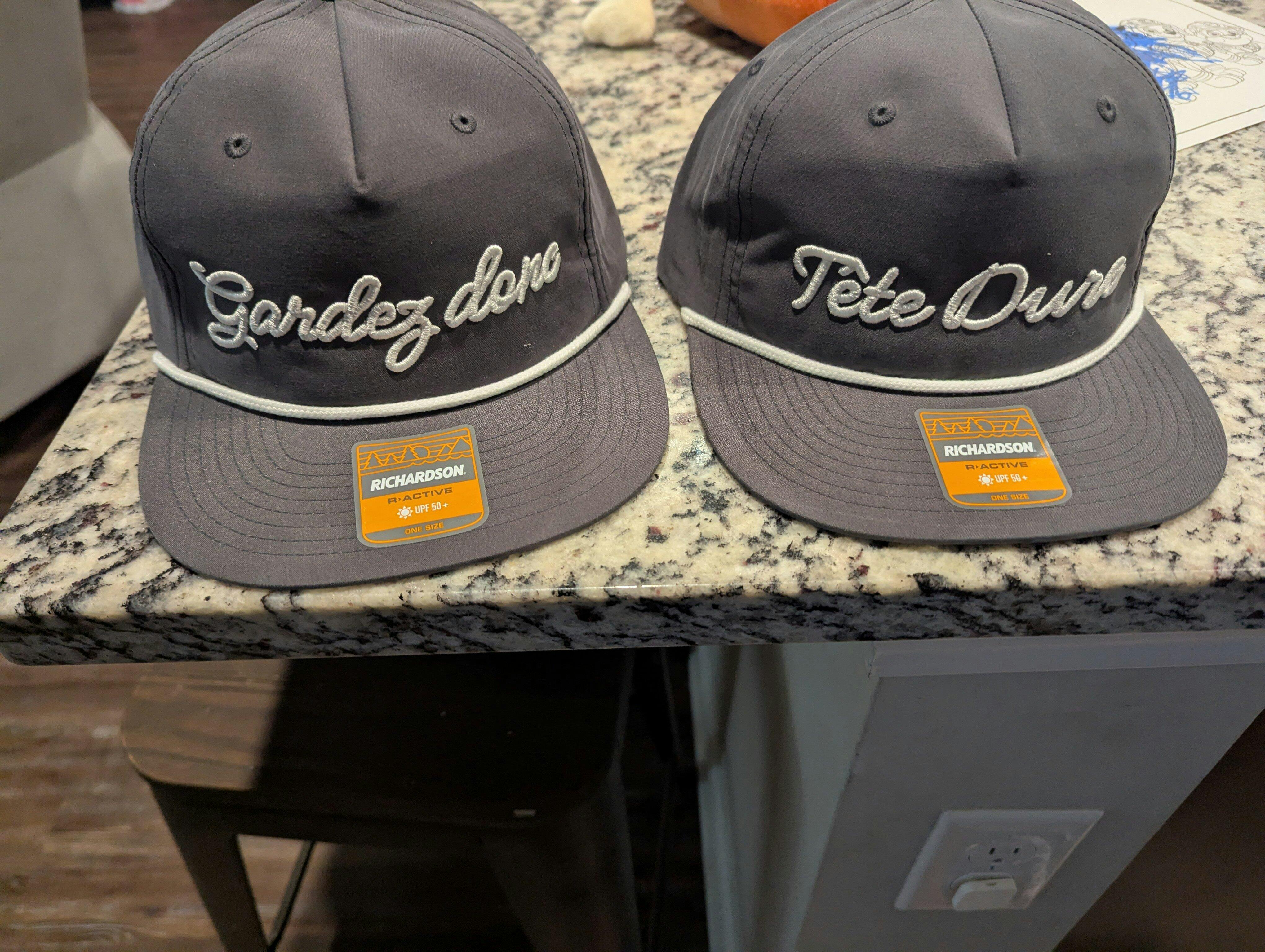 Tete Dure means "hard head" in Cajun French. Pronounced "tet duh", this is the perfect hat for all those stubborn one's out there!